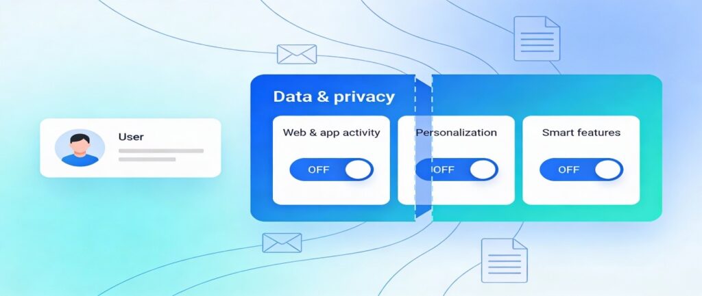 Reduce account-level data use: In your Google Account under Data & privacy, turn off options like Web & App Activity, certain personalization settings, and smart features that allow data from Gmail and Docs to feed personalized AI behavior. These switches do not guarantee that your content never touches machine learning systems, but they do narrow the scope of how it is reused.